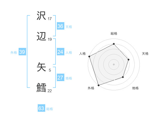 沢辺 矢鱈さんを姓名の画数から五運を鑑定