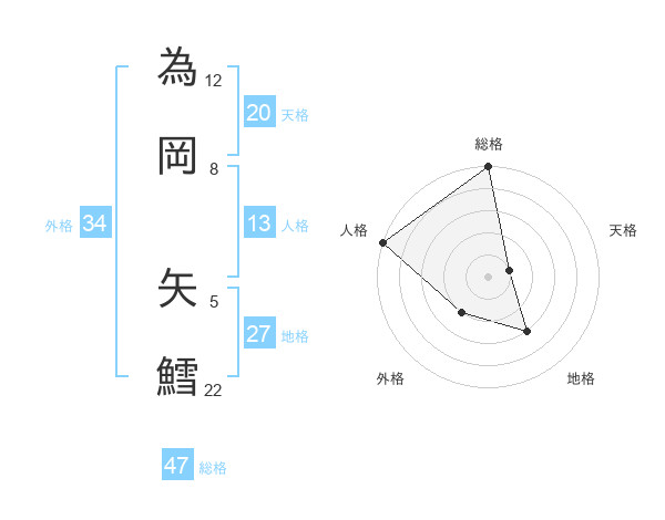 為岡 矢鱈さんを姓名の画数から五運を鑑定