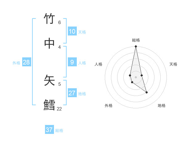 竹中 矢鱈さんの総格は37画の5点!