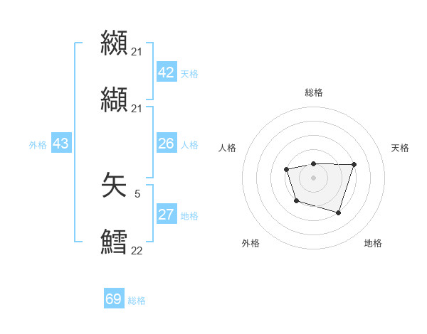 纐纈 矢鱈さんを姓名の画数から五運を鑑定