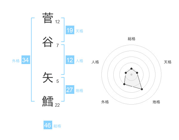 菅谷 矢鱈さんを姓名の画数から五運を鑑定