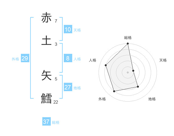 赤土 矢鱈さんの総格は37画の5点!
