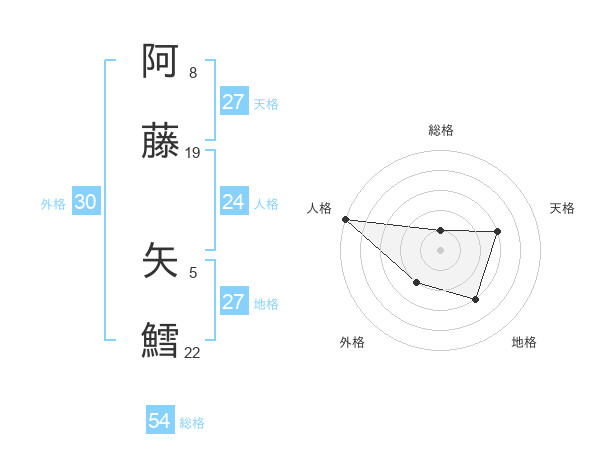 阿藤 矢鱈さんの天格は27画の3点!