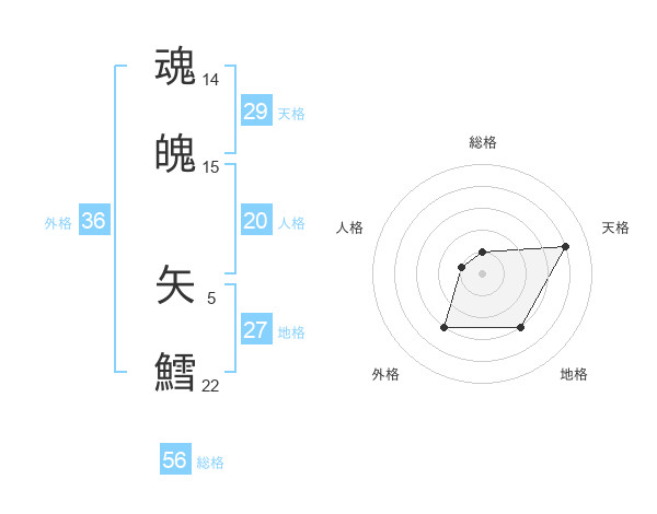 魂魄 矢鱈さんを姓名の画数から五運を鑑定