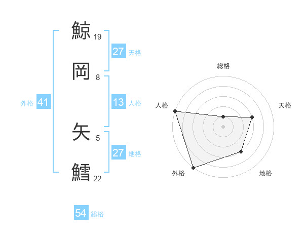 鯨岡 矢鱈さんを姓名の画数から五運を鑑定