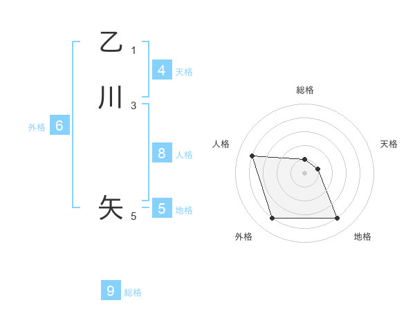 乙川 矢さんを姓名の画数から五運を鑑定