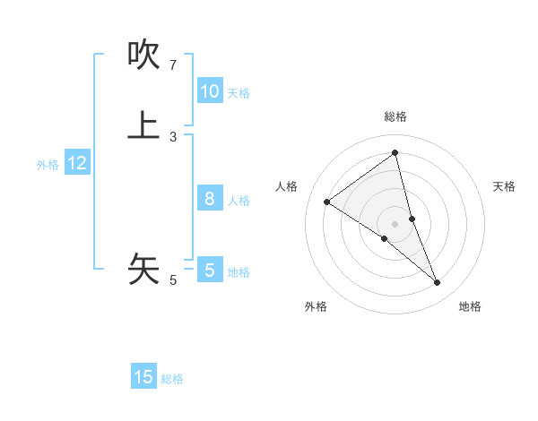 吹上 矢さんの総格は15画の4点!