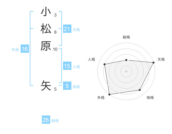 小松原 矢さんの天格は21画の5点!
