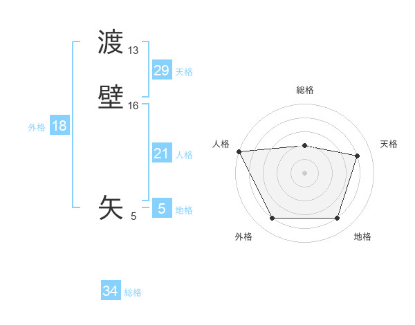 渡壁 矢さんの外格は18画の4点!
