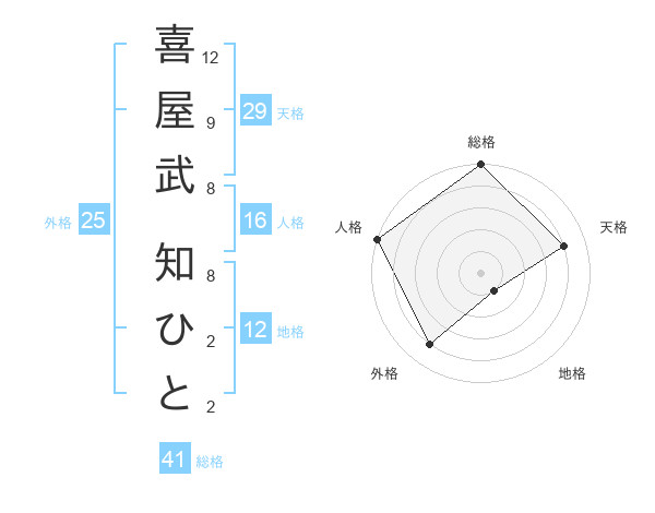喜屋武 知ひとさんの天格は29画の4点