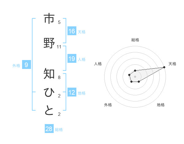 市野 知ひとさんを姓名の画数から五運を鑑定