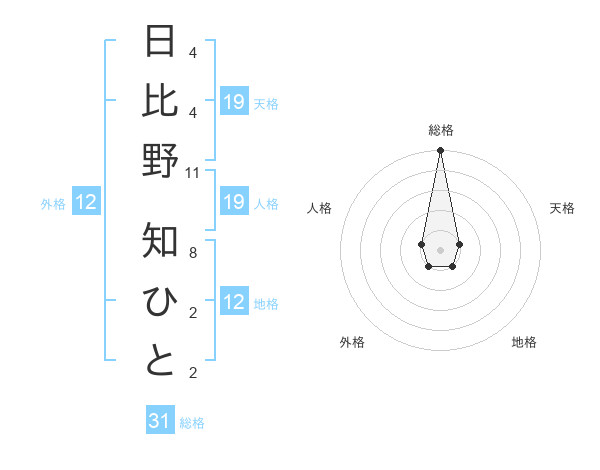 日比野 知ひとさんを姓名の画数から五運を鑑定