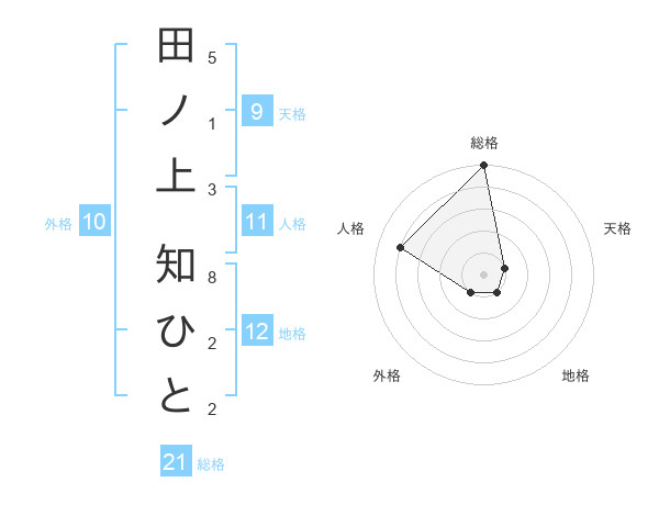 田ノ上 知ひとさんを姓名の画数から五運を鑑定