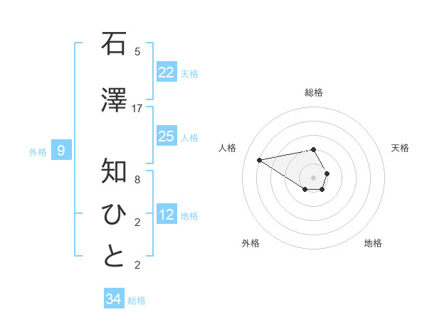 石澤 知ひとさんの総格は34画の2点!