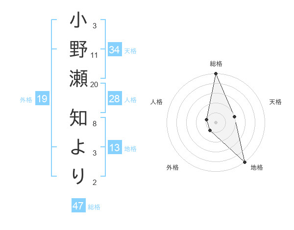 小野瀬 知よりさんを姓名の画数から五運を鑑定