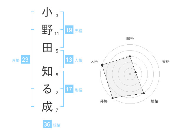 小野田 知る成さんを姓名の画数から五運を鑑定