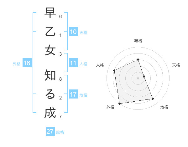 早乙女 知る成さんを姓名の画数から五運を鑑定
