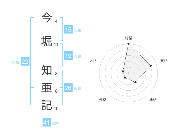今堀 知亜記さんを姓名の画数から五運を鑑定