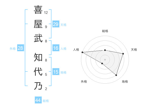 喜屋武 知代乃さんの天格は29画の4点!