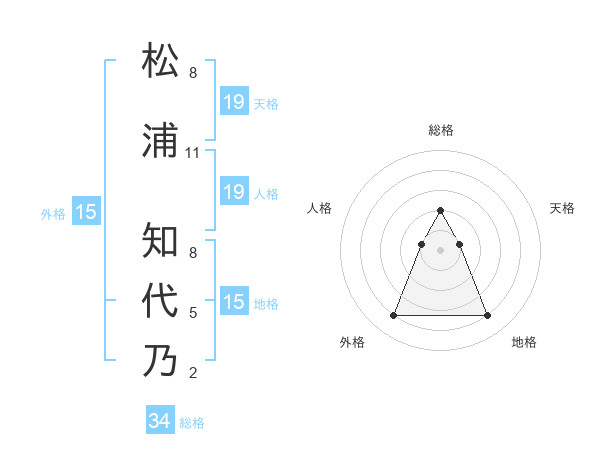 松浦 知代乃さんの総格は34画の2点!