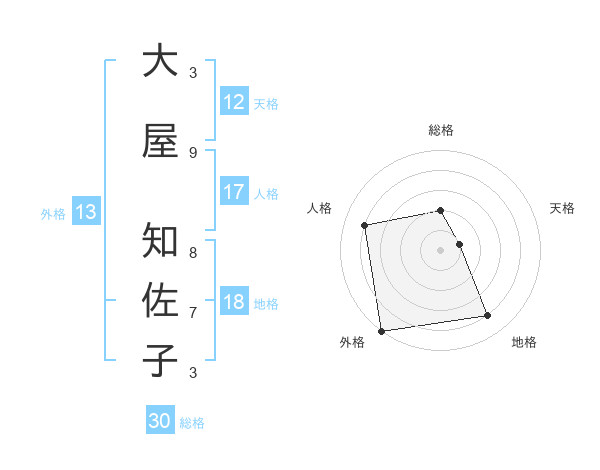 大屋 知佐子さんを姓名の画数から五運を鑑定