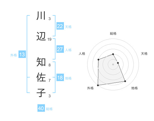 川辺 知佐子さんを姓名の画数から五運を鑑定