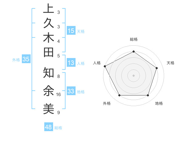 上久木田 知余美さんを姓名の画数から五運を鑑定