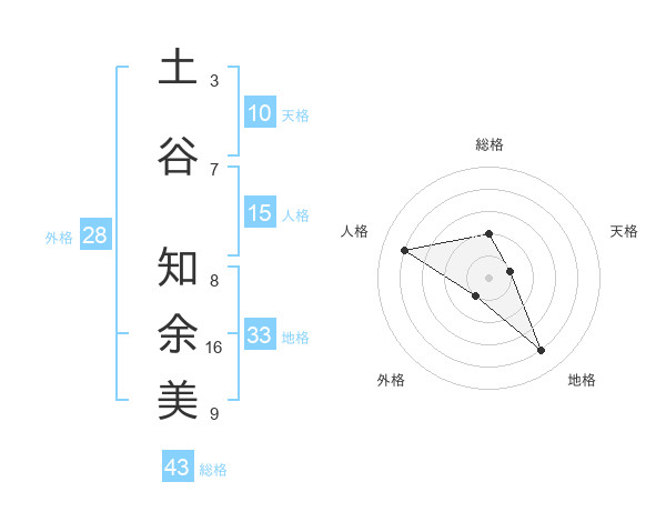 土谷 知余美さんを姓名の画数から五運を鑑定