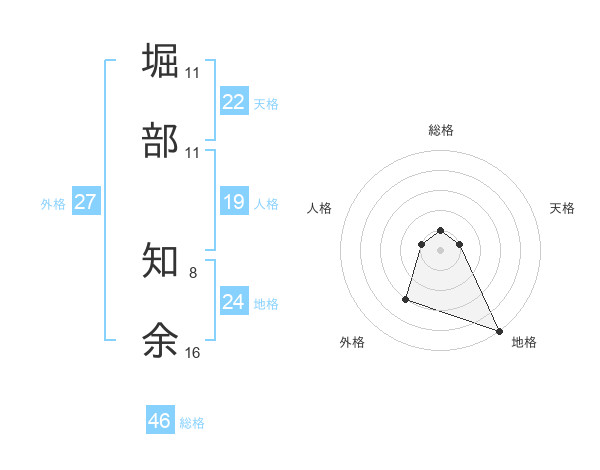 堀部 知余さんの天格は22画の1点