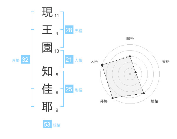 現王園 知佳耶さんを姓名の画数から五運を鑑定