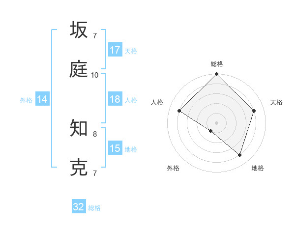 坂庭 知克さんを姓名の画数から五運を鑑定