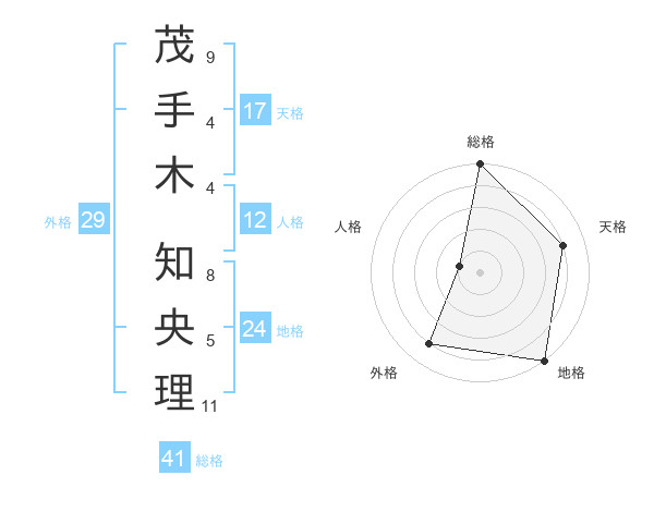 茂手木 知央理さんの天格は17画の4点!