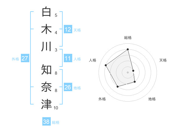 白木川 知奈津さんの総格は38画の4点!