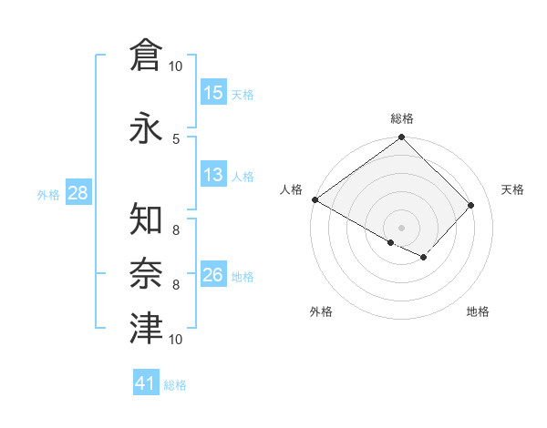 倉永 知奈津さんの総格は41画の5点!