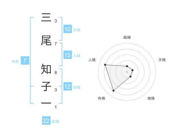 三尾 知子一さんの総格は22画の1点