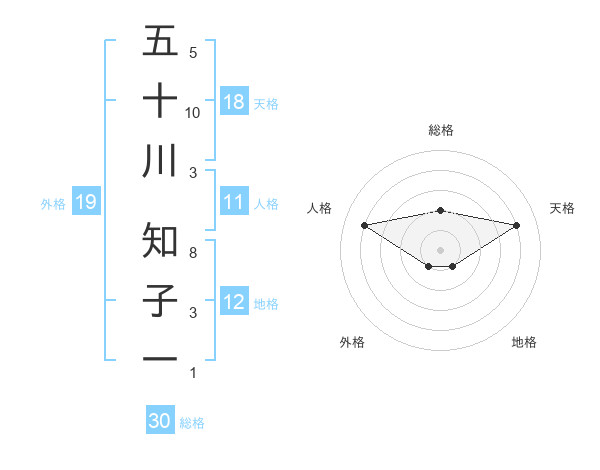 五十川 知子一さんを姓名の画数から五運を鑑定