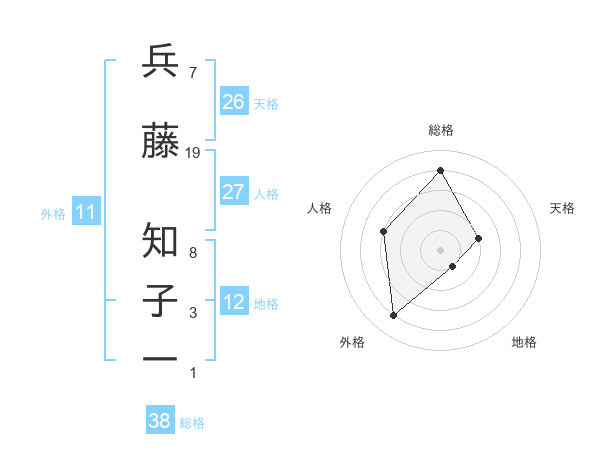 兵藤 知子一さんの総格は38画の4点!