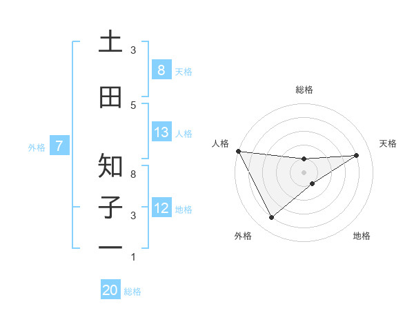 土田 知子一さんの総格は20画の1点!