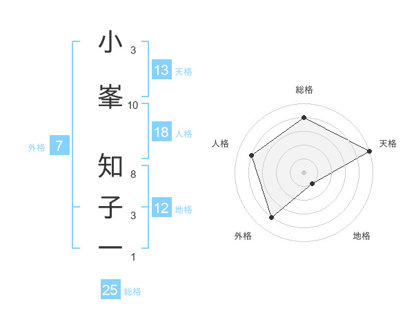小峯 知子一さんを姓名の画数から五運を鑑定