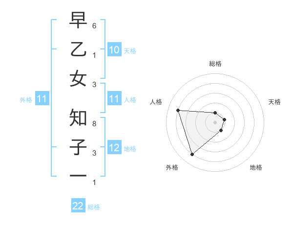 早乙女 知子一さんを姓名の画数から五運を鑑定