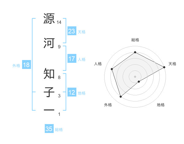 源河 知子一さんの天格は23画の5点!