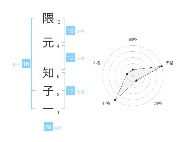 隈元 知子一さんの天格は16画の5点!