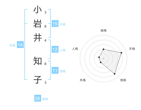 小岩井 知子さんの総格は26画の2点!