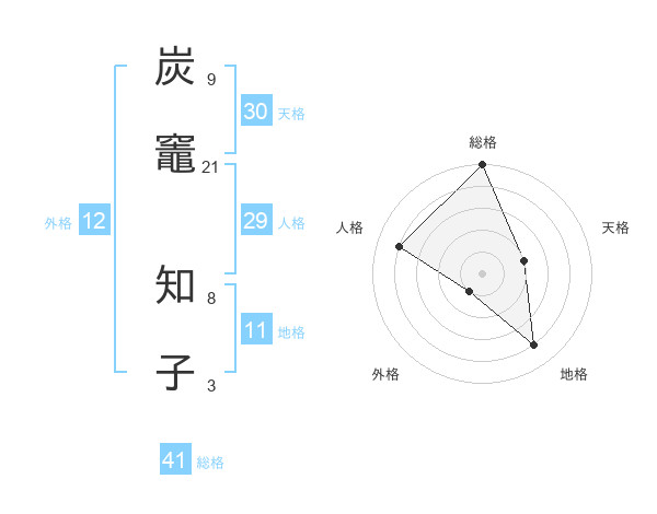 炭竈 知子さんの総格は41画の5点!