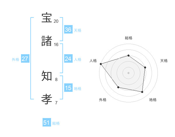 宝諸 知孝さんを姓名の画数から五運を鑑定