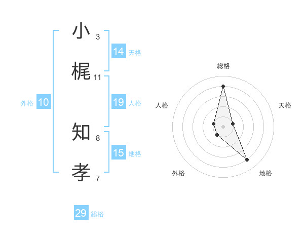 小梶 知孝さんの総格は29画の4点!