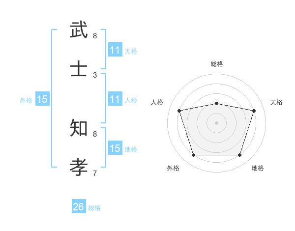 武士 知孝さんの総格は26画の2点!