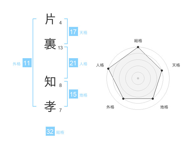 片裏 知孝さんの天格は17画の4点!