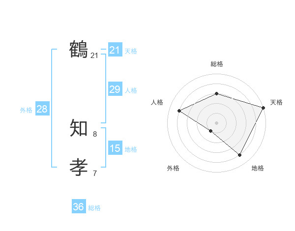鶴 知孝さんの天格は21画の5点!