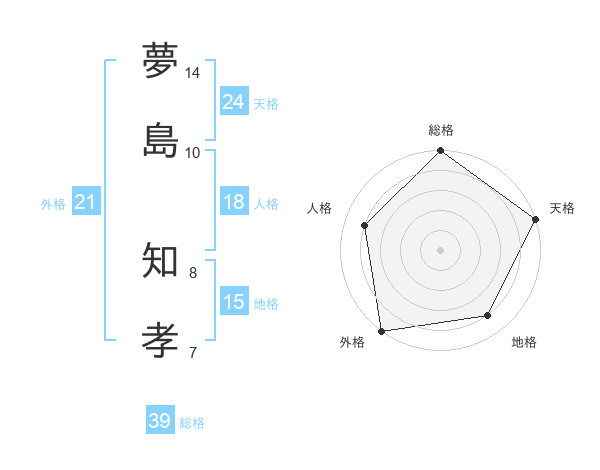 夢島 知孝さんを姓名の画数から五運を鑑定